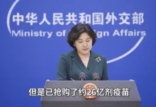 14日的例行记者会上,华春莹回应:美国给哪一个国家包括它的哪一个盟友提供了多少疫苗援助?美国人口3.3亿,占世界4%,但已抢购约26亿剂疫苗,占全球疫苗总量的四分之一。