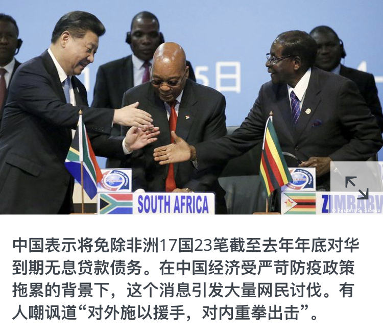 在中国经济受严苛防疫政策拖累,应届毕业生就业前景黯淡的背景之下,中国免除非洲多笔债务的消息引发大批网民讨伐。今年第二季度中国GDP只增长了0.4%。一般认为,今年政府给定的5.5%经济增长目标将无法实现。