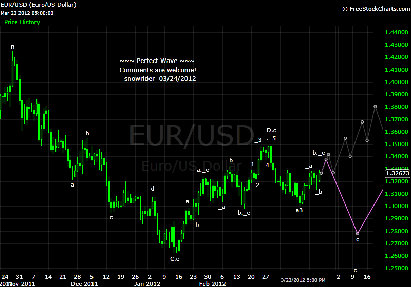 MADASINHATTER - I call it Perfect Wave because it is the brand of the series of my wave posts. I could have called it Snowrider's Wave Analysis (but that did not sound powerful). Of course, you can interpet the word "perfect" as anything as you want. The analysis is of some educated guess. Isn't the whole world making guesses all the time? The analysis is based on the Elliott Wave Principle. If you don't know what that is, I would recommend you getting a book and study first.