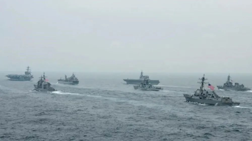 我国也可以组织相关友好国家,组织朝鲜,巴基斯坦,伊朗,伊拉克,委内瑞拉,古巴,阿富汗塔利班等国一起加入演习,不邀请也参加,他们搞航行自由,我们搞演习自由。。